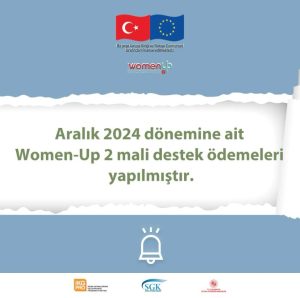 ARALIK 2024 dönemine ait Women-Up 2 mali destek ödemeleri 14.02.2025 tarihinde yapılmıştır. KADINSA İŞVEREN DESTEK BİZDEN